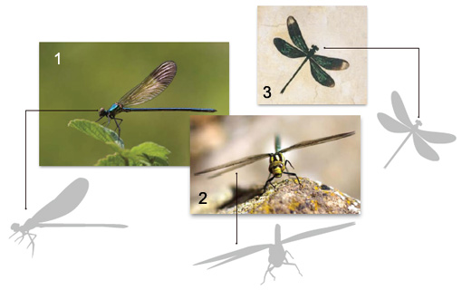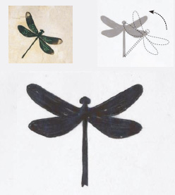 旋轉:將蜻蜓擺正,這符合我們眼睛的自然感觀。也只有將它擺正,蜻蜓的對稱、安靜、穩(wěn)定的感覺才能傳達出來,而且“立正”還使我們更容易產(chǎn)生崇敬之情,就象在觀看雕像一樣。