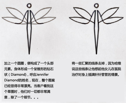 項目描述是這個設計的概述,主要是寫下“我們要做的是什么”及“為什么要做此項設計”。因為蜻蜓對于詹尼弗及她的家庭都具有特殊的象征意義,在一開始就已經(jīng)定下要采用“蜻蜓”這一形象來作為標志的主要圖案,所以這個要求應該開門見山地指出來。